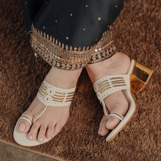 Bandhan White and Gold Box Heels